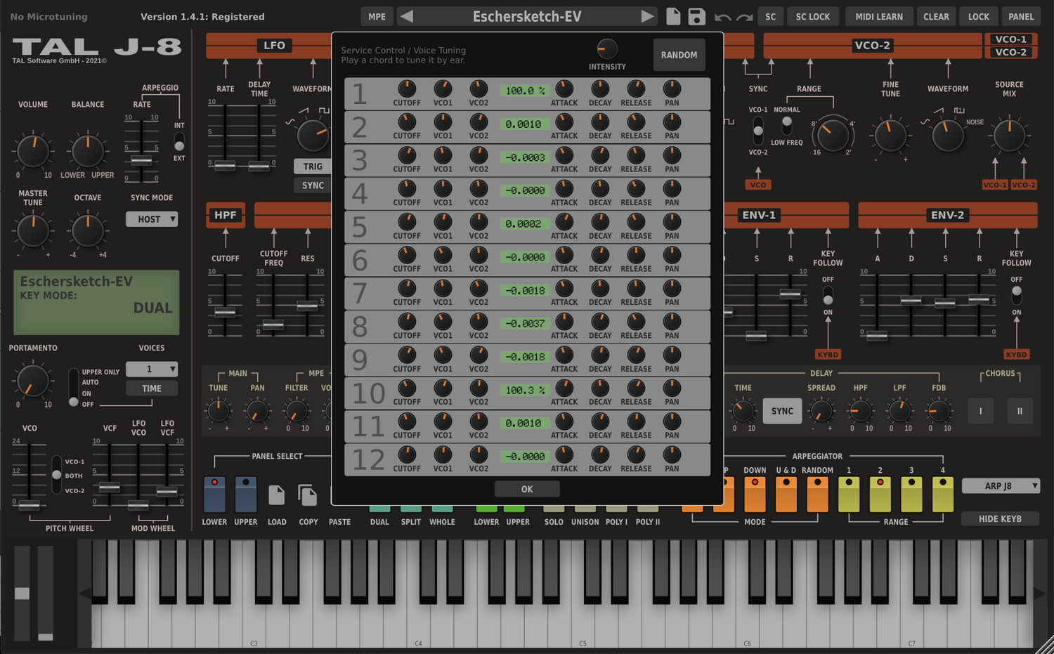 TAL-J-8 er en synthesizer plugin, der omhyggeligt efterligner den legendariske Jupiter 8 og er kalibreret efter vores hardware-enhed, hvilket leverer den mest autentiske og troværdige gengivelse af dens ikoniske lyd.