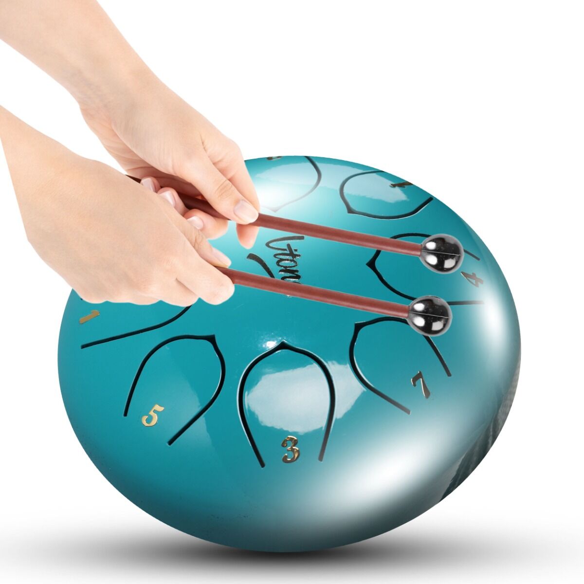V-Tone VBJ-6-8-C er en kompakt steel tongue drum (tank drum), der leverer en rolig, harmonisk og meditativ lyd. Med 8 toner i C-skala er instrumentet nemt at spille på – selv for begyndere – og perfekt til både afslapning, kreativ udfoldelse og musikalsk læring.
