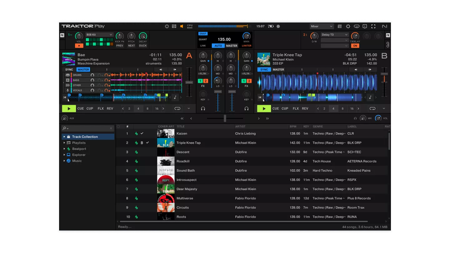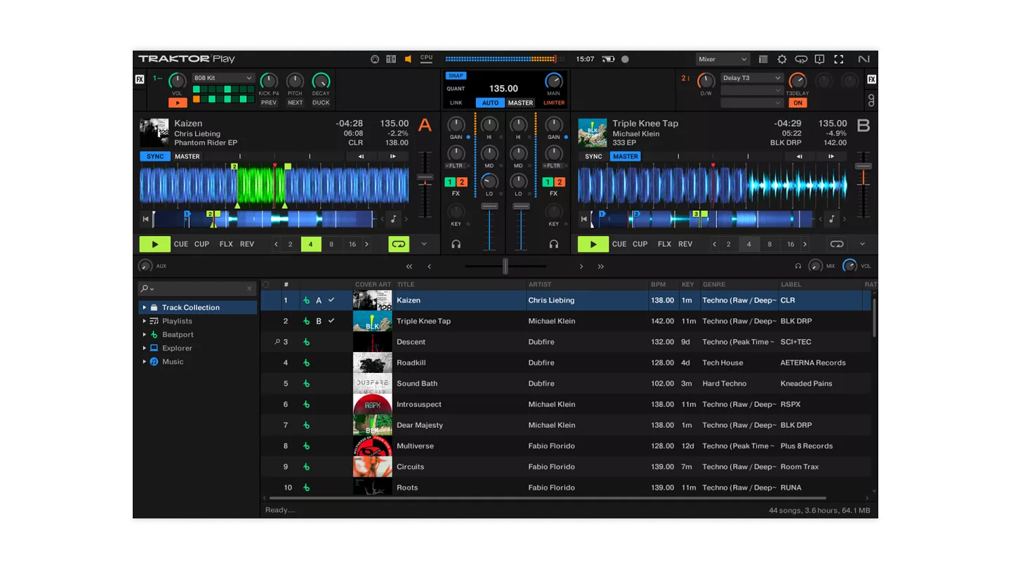 Kom i gang med alle klassikerne som mixer kontroller, transport, faders og browsing, og udforsk derefter en skattekiste af kreative værktøjer, herunder looping, hot cues, Traktors legendariske effekter og trommestemseparation.