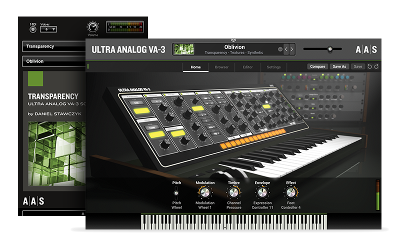 Transparency er lyddesigner Daniel Stawczyks fjerde titel i vores Sound Bank Series og hans tredje for Ultra Analog VA-3. De 149 rige presets udforsker den percussive natur af vores analoge synthesizer. Kick, Snare, Hi-hat og Percussion loops er samlet sammen med nogle fint udformede Ambient, Synth og Effect lyde.