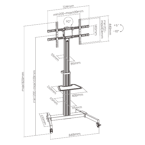 Dimensioner (B×D×H): 848 × 610 × 1420–1820 mm