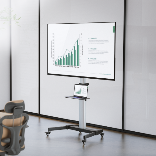 Letvægts TV-vogn i elegant aluminiumskonstruktion – stilren, stabil og nem at flytte