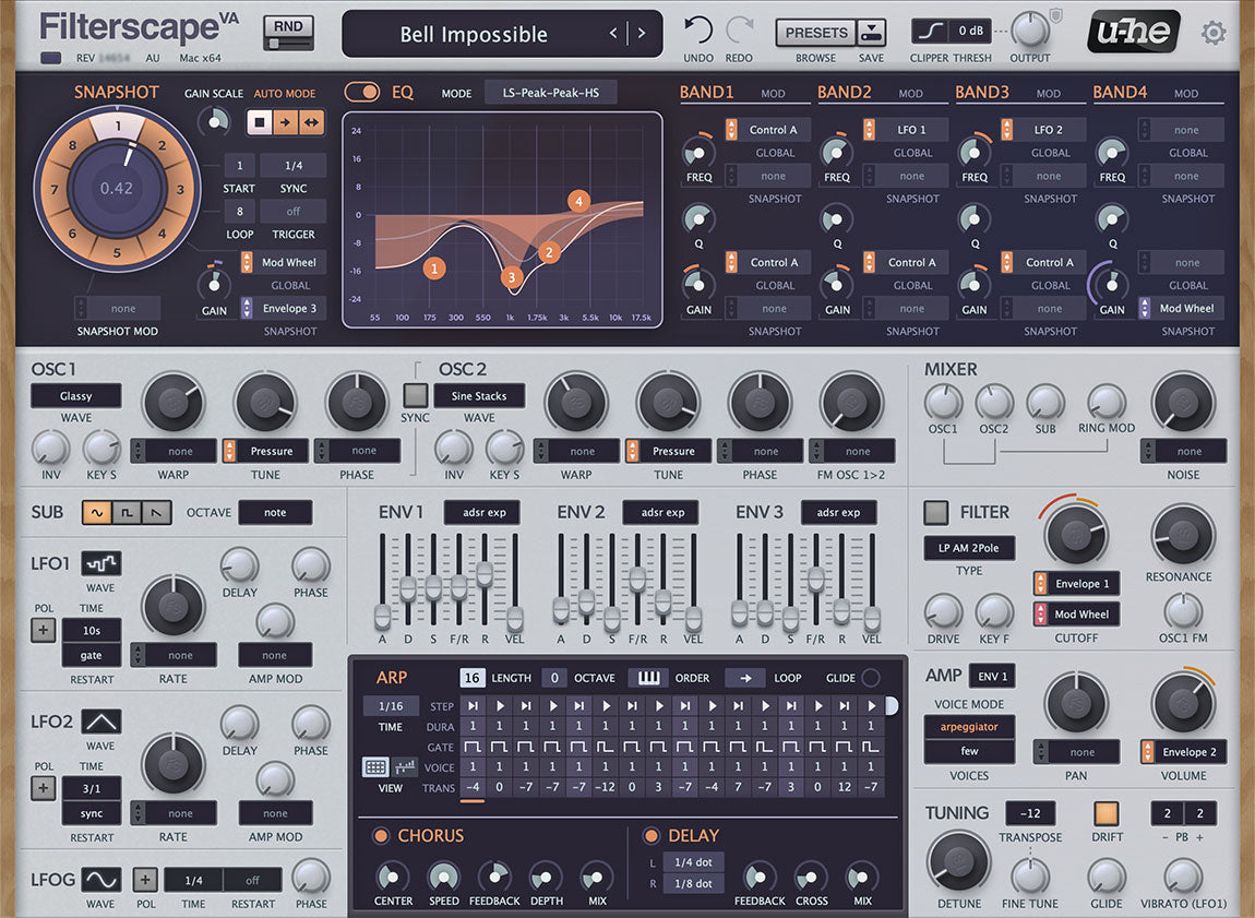 Oprindeligt udgivet i 2004, var Filterscape u-he’s allerførste cross-platform, multi-format plugin. En vigtig milepæl for u-he som brand, og det blev hurtigt en fast bestanddel i mange musikeres arsenal. Nu opgraderet med moderne teknologi og klar til morgendagens opgaver, viser vi endnu engang vores engagement i at vedligeholde vores produktlinje. Filterscape er måske blevet overset i de senere år, men ikke længere!