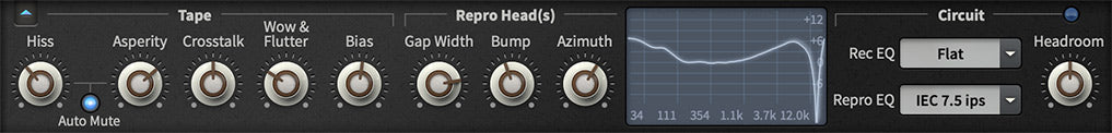 I Tape-sektionen er måske de mere let genkendelige egenskaber ved båndoptagelse: hiss, asperity, wow & flutter, crosstalk og bias. Juster lidt af hver for en retro stemning eller "lim". Juster de ekstreme indstillinger, og du kan ende med lyden af lavkvalitetsbånd, der har været i nogens kælder alt for længe.