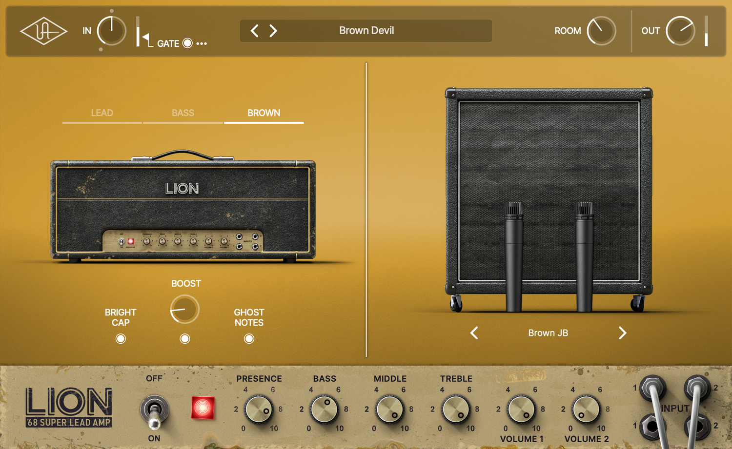 UAD Lion '68 plug - in giver dig den inspirerende tone og følelse af tre ekspert-mikede "guld-enhed" 100 - watt plexi amp hoveder — med lydrealismen langt ud over andre plug - ins. Baseret på den prisvindende UAFX pedal får du alle kontrollerne, der gør denne amp til et must-have for næsten hver genre i din DAW.