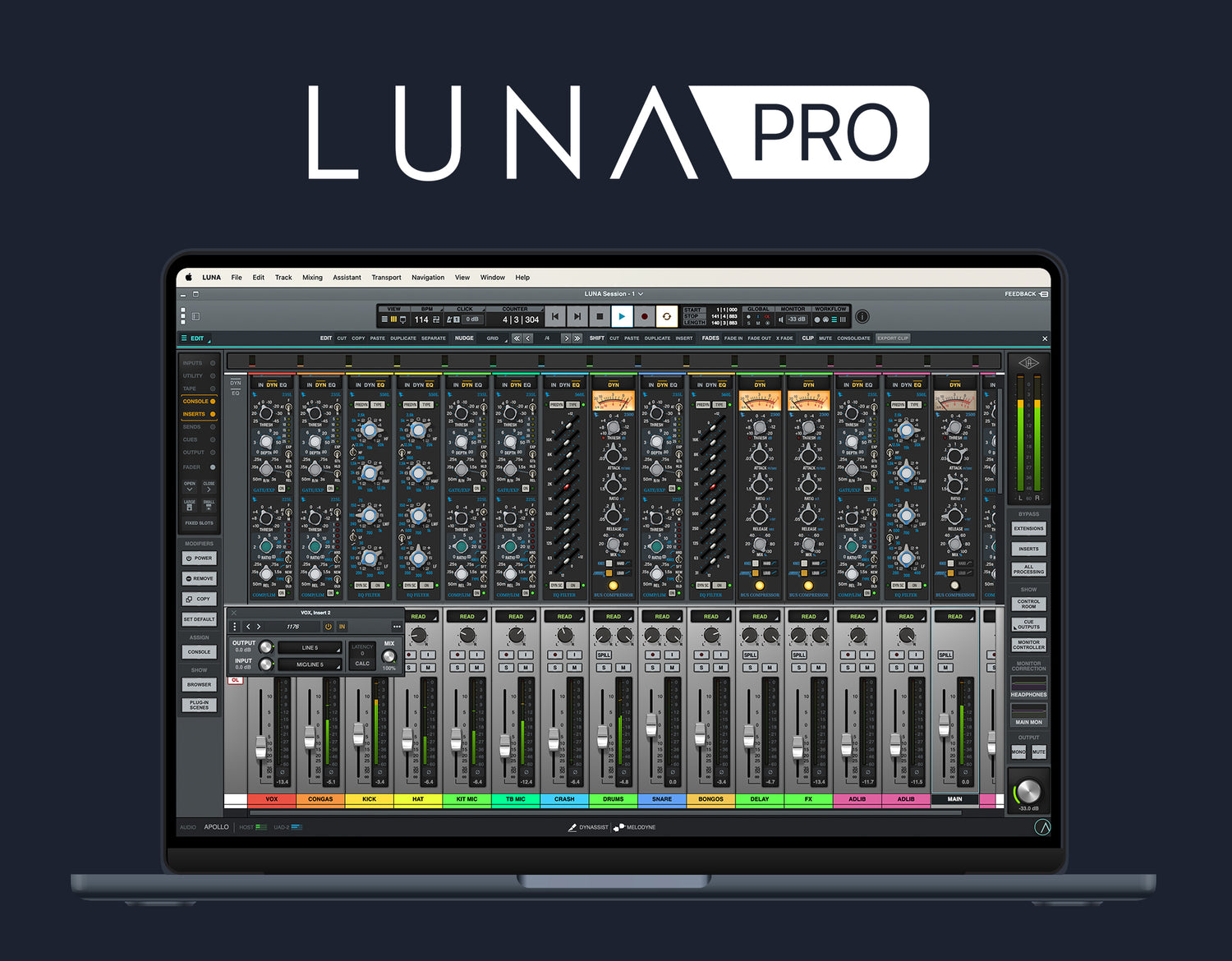 LUNA Pro låser op for den ultimative analoge oplevelse med ekspertmodelerede Console og Summing Extensions fra API, Studer og Ampex, der er indbygget direkte i mixer — plus dusinvis af UAD Plug-Ins, virtuelle instrumenter, ARA-værktøjer og professionelle funktioner til at tage dine sange fra demo til færdig plade.