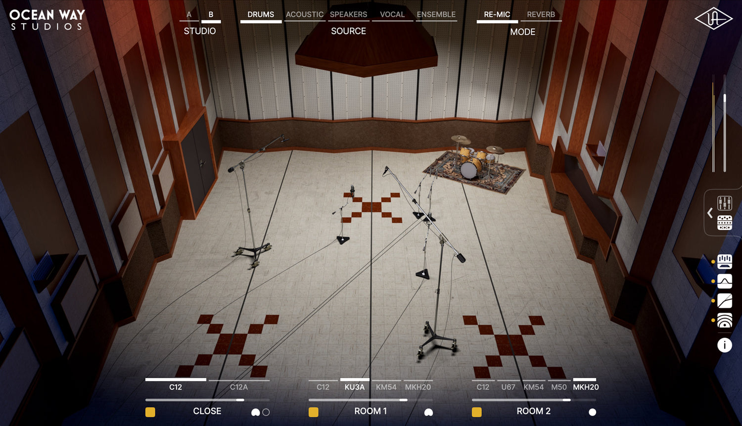 Designet af Bill Putnam Sr. forbliver Ocean Way’s Studio A og B to af de mest fejrede optageområder i verden. Nu kan du placere dine kilder “inde” i disse ikoniske rum og tilføje den rige atmosfære, der fortsat inspirerer producenter, ingeniører og kunstnere.