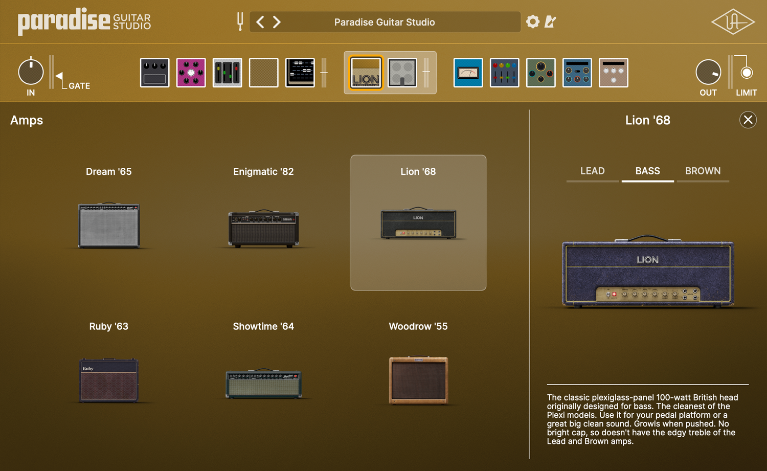 Med vores bedste amp-emuleringer — inklusive den anerkendte UAD Dream ’65, Enigmatic ’82 og mere — er Paradise som at være i et rum fyldt med ikonisk udstyr. Nyd rige vintage toner med al den berøringsfølsomhed og rør “sag”, som professionelle guitarister længes efter. Uanset om du har brug for jangly cleans, naturlig overdrive eller sjældne boutique-lyde, kan du indstille præcis det, din track kræver.