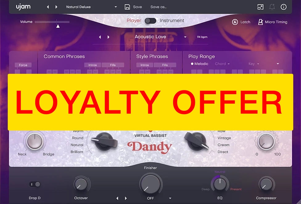 DANDY er perfekt for alle producenter på alle færdighedsniveauer. De fejlfri kontroller sikrer, at begyndere får fantastiske resultater, der ikke lyder som kedelige, repetitive loops. Dygtige keyboardspillere kan nemt omgå de virtuelle musikerfunktioner og spille baspartierne præcis som de ønsker. Alle får fantastisk bas i deres produktioner!