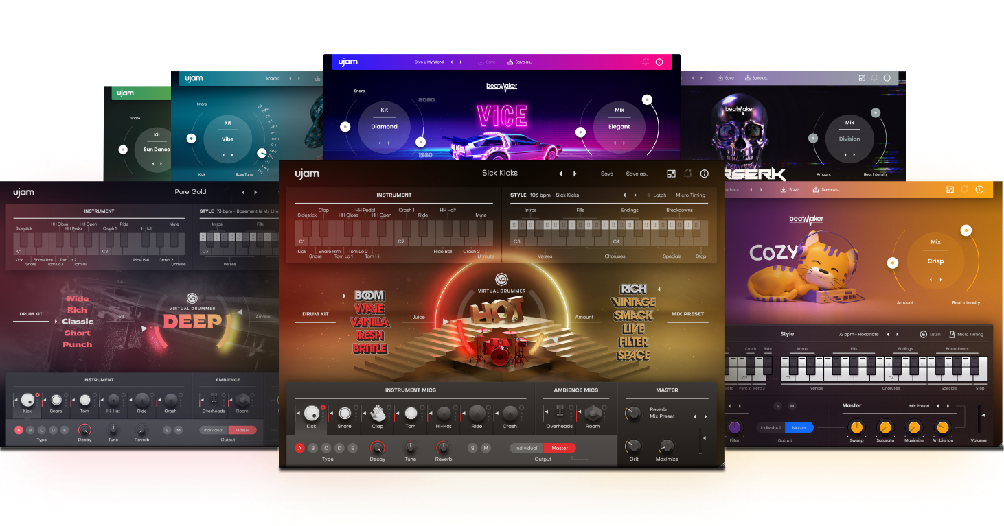 Fra lo-fi vibes med Beatmaker COZY til dristige, drivende beats med VOID og BERSERK til Virtual Drummer DEEP for soulfyldte grooves og Virtual Drummer HOT for hits på hitlisterne.