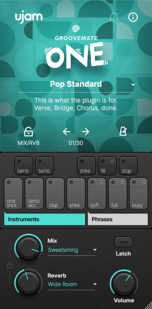 Groovemate ONE krydrer hurtigt og nemt dine numre med den vigtige følelse. Vælg blot en af de færdiglavede sætninger og tilpas dem til dine behov. Eller spil de medfølgende instrumenter selv, direkte via MIDI input.