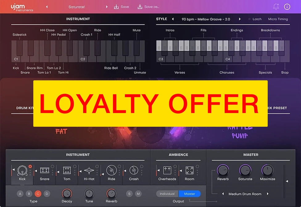 Perfekt til at groove funky stilarter, er PHAT den perfekte studiepartner for musikproducenter på alle færdighedsniveauer. Den meget bløde læringskurve, et kendetegn ved alle UJAM Instruments plug-ins, betyder, at både begyndere og professionelle hurtigt kan lægge fantastiske beats uden tidligere trommeerfaring.