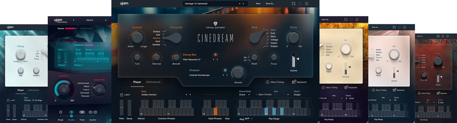 Hver Virtual Guitarist VST plug-in i serien har sin egen unikke tonale personlighed med omhyggeligt kuraterede kombinationer af guitarer, forstærkere, spillestile og effekter, der muliggør alt fra brølende elektriske power chords og funky clean riffs til delikate nylon- og stålstrengede akustiske strum og fingerpicking.