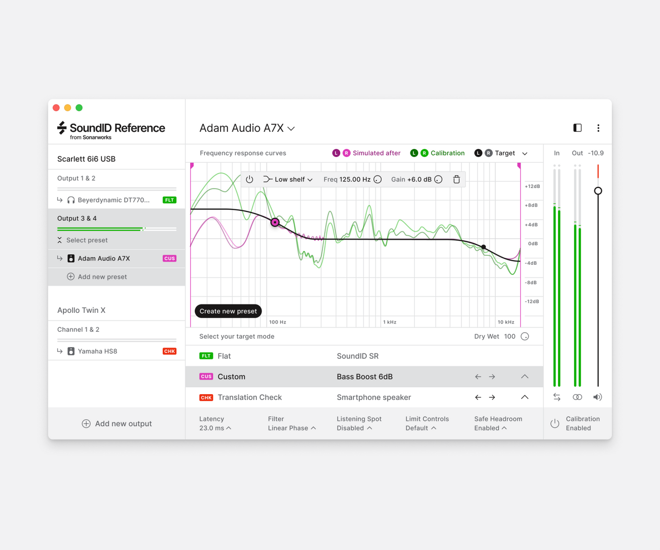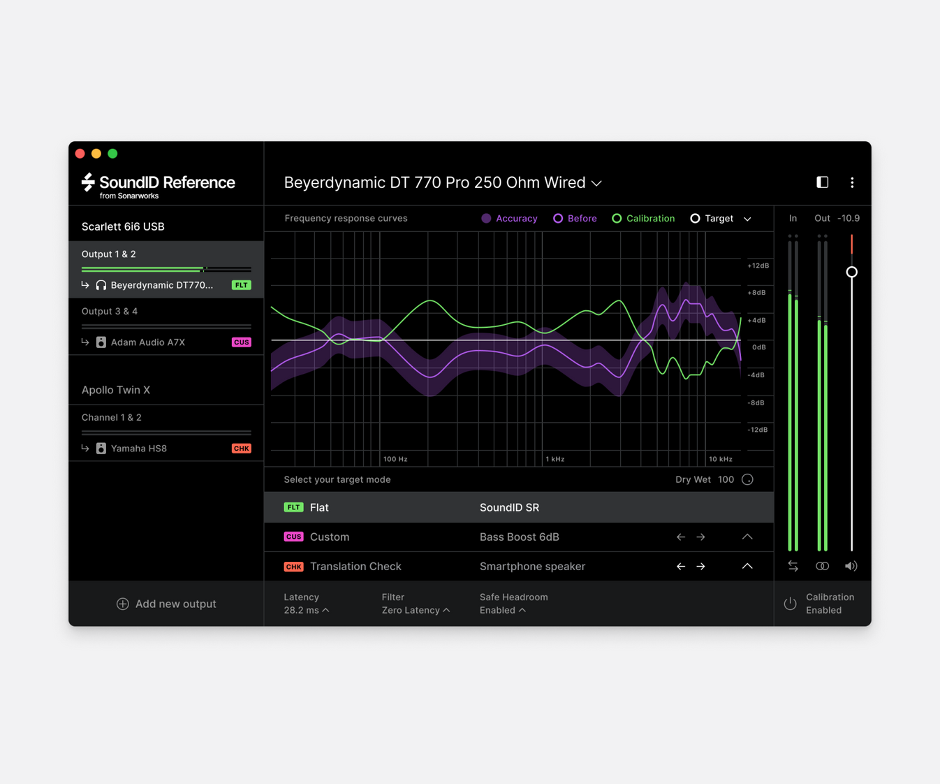 Opgrader dine hovedtelefoner for at forbedre din mixeproces med vores nyeste funktioner! Den seneste produktopgradering inkluderer et nyfortolket UX for at lette dit workflow, yderligere softwarefunktioner til at forbedre dine mixes og mindre forbedringer til avanceret overvågning. Efter opgraderingen skal du vælge din hovedtelefonkalibreringsprofil, justere funktioner og lade det køre i baggrunden - det vil sømløst passe ind i dit workflow.