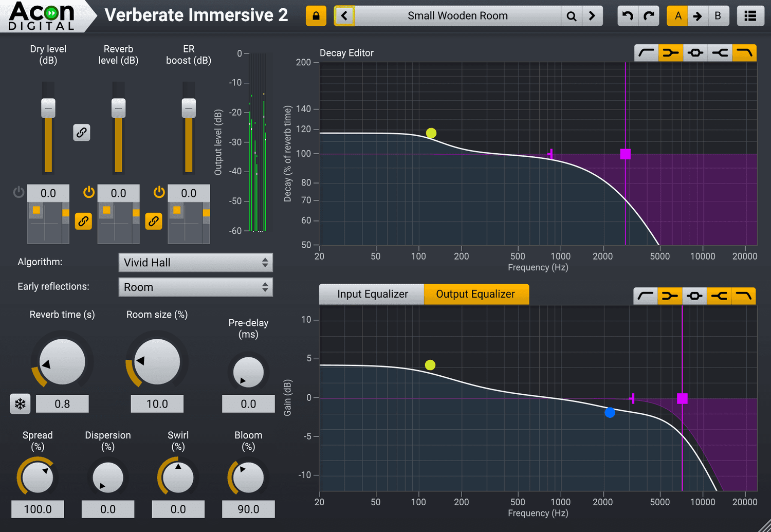 - Two different late reverb algorithms: The new Vivid Hall and the Legacy Hall from version 1