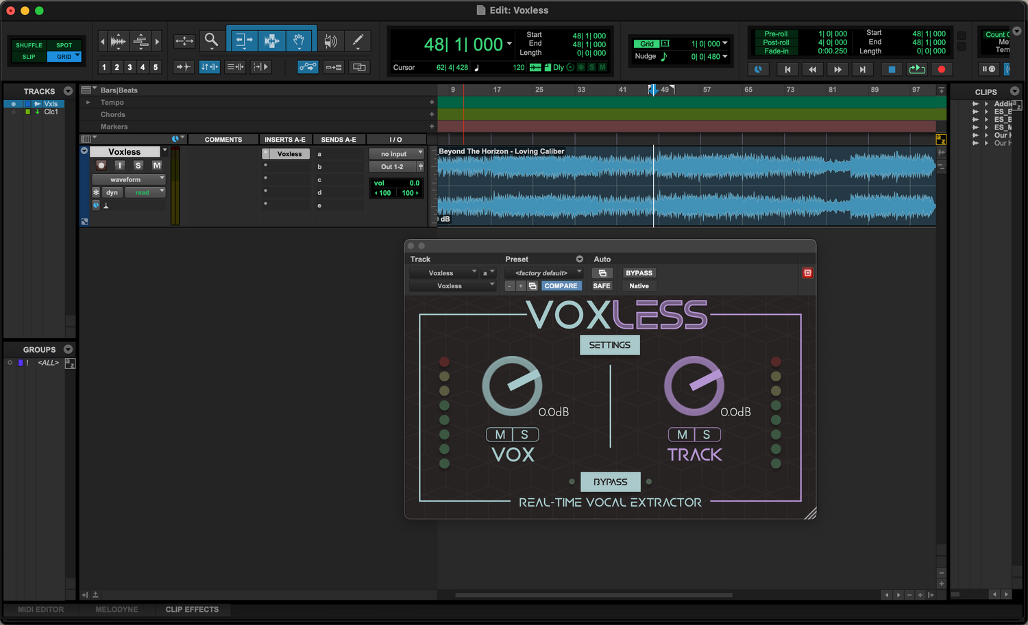 Kompatibel med alle større DAWs, herunder ProTools, Logic Pro X og Cubase, er VOXLESS ideel til DJs, mash-up entusiaster samt mixing- og masteringingeniører, der ønsker at justere en mix uden at kræve de originale stems.