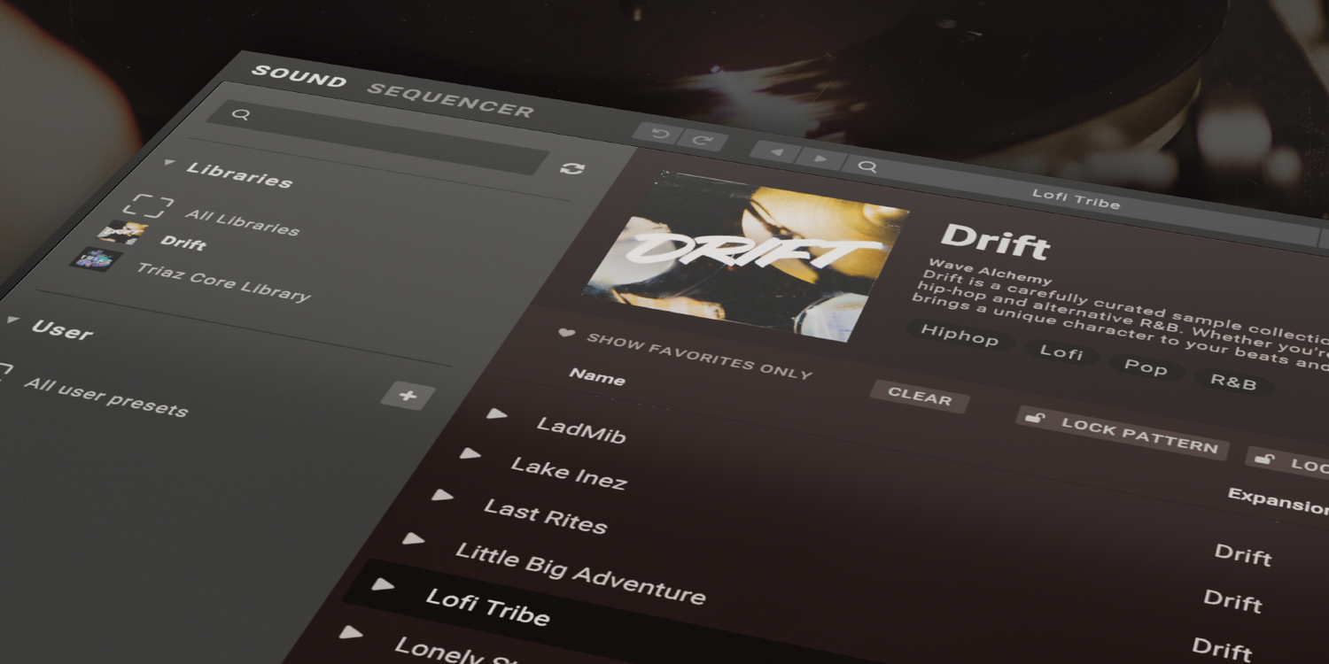 Triaz Player er gratis og giver fuld adgang til alle Drift presets. Uanset om du skulpturerer et lofi mesterværk eller en genre-definerende rytmesektion, lader Drift’s fleksibilitet dig skabe dybe, dynamiske trommearrangementer med lethed.