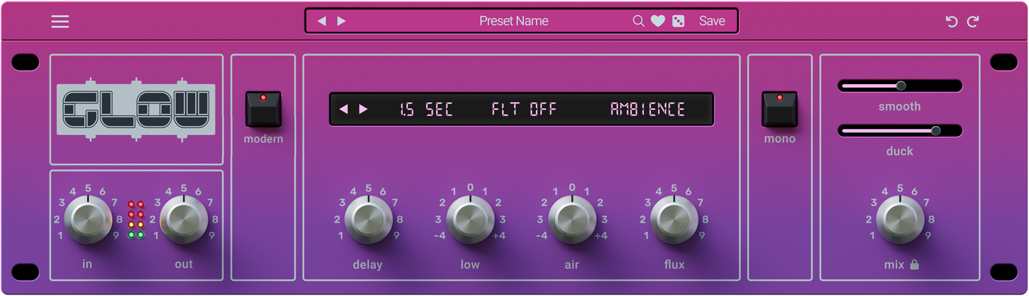 Glow er en kærlig genoplivning og genopfindelse af den legendariske enhed. Vi har trofast fanget dens signaturalgoritmer og lydadfærd, og derefter løftet den med moderne DSP, arbejdsflowinnovationer og kreative værktøjer, der skubber det originale design ind i dristigt, ukendt terræn.