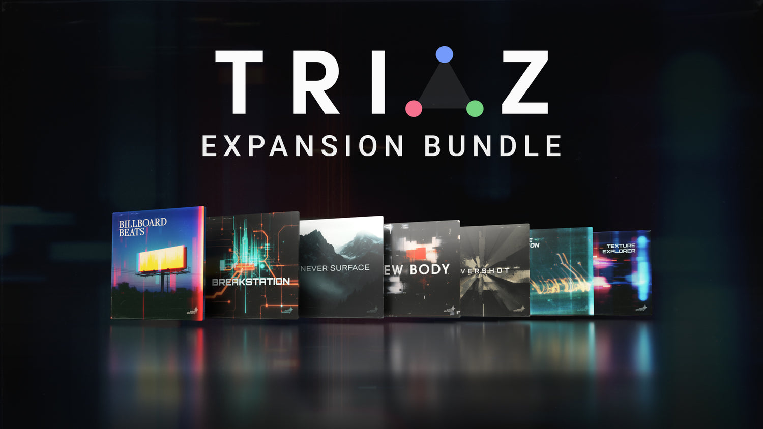 Triaz Expansion Bundle inkluderer 7 helt nye Triaz / Triaz Player udvidelser, der byder på 2.260 friske trommelyde og over 570 fint udformede Triaz / Triaz Player presets og mønstre.