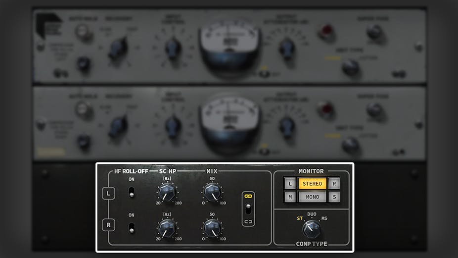 For moderne mixingmuligheder er der tilføjet funktioner til den originale RS124: Skulpturer din lyd med mid-side behandling, udover stereo, dual mono og mono. Rul høje frekvenser af for at glatte lyden. Anvend Sidechain Highpass for at fjerne lave frekvenser fra din bas/kick sidechain. Juster den perfekte blanding med Dry/Mix.