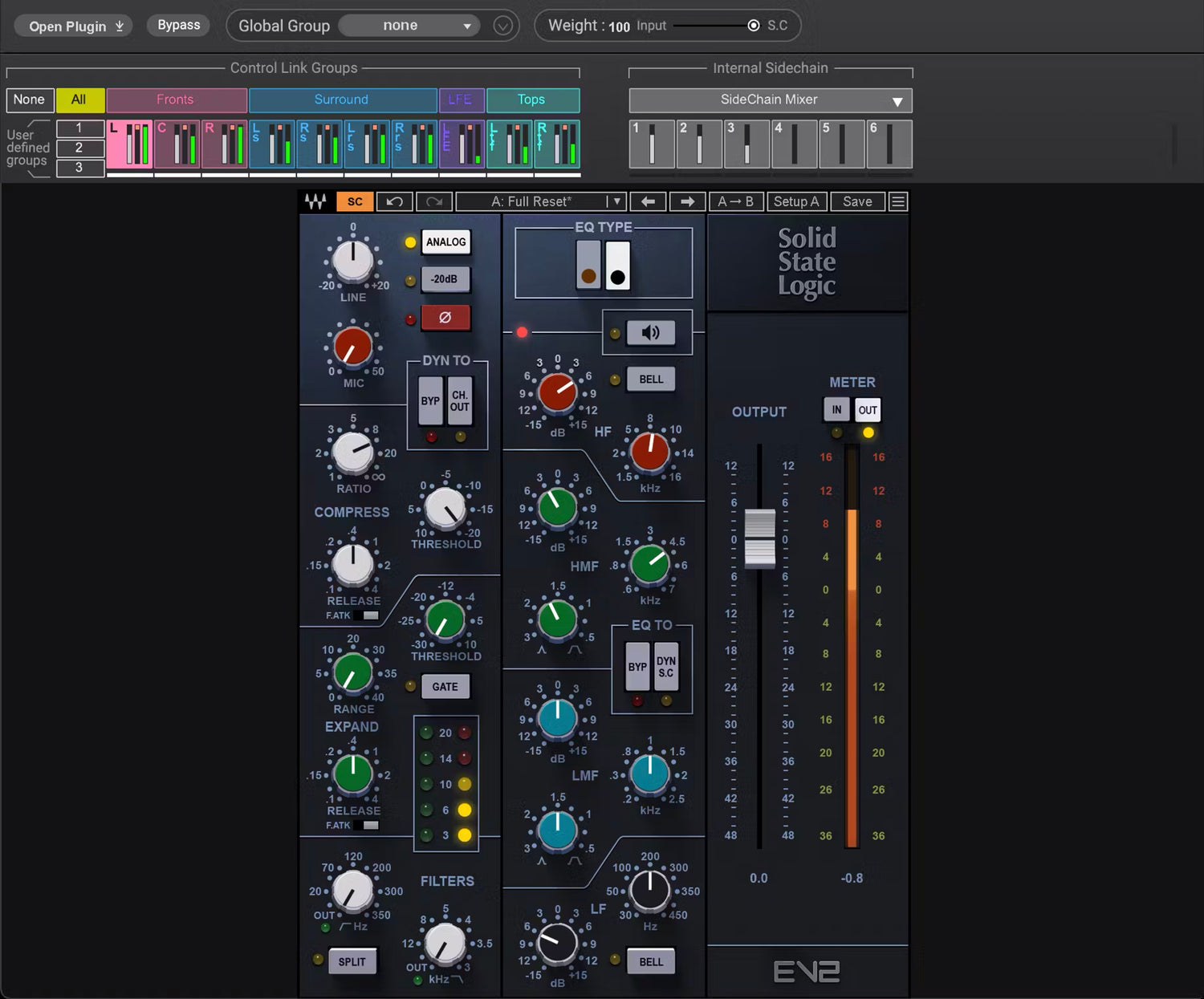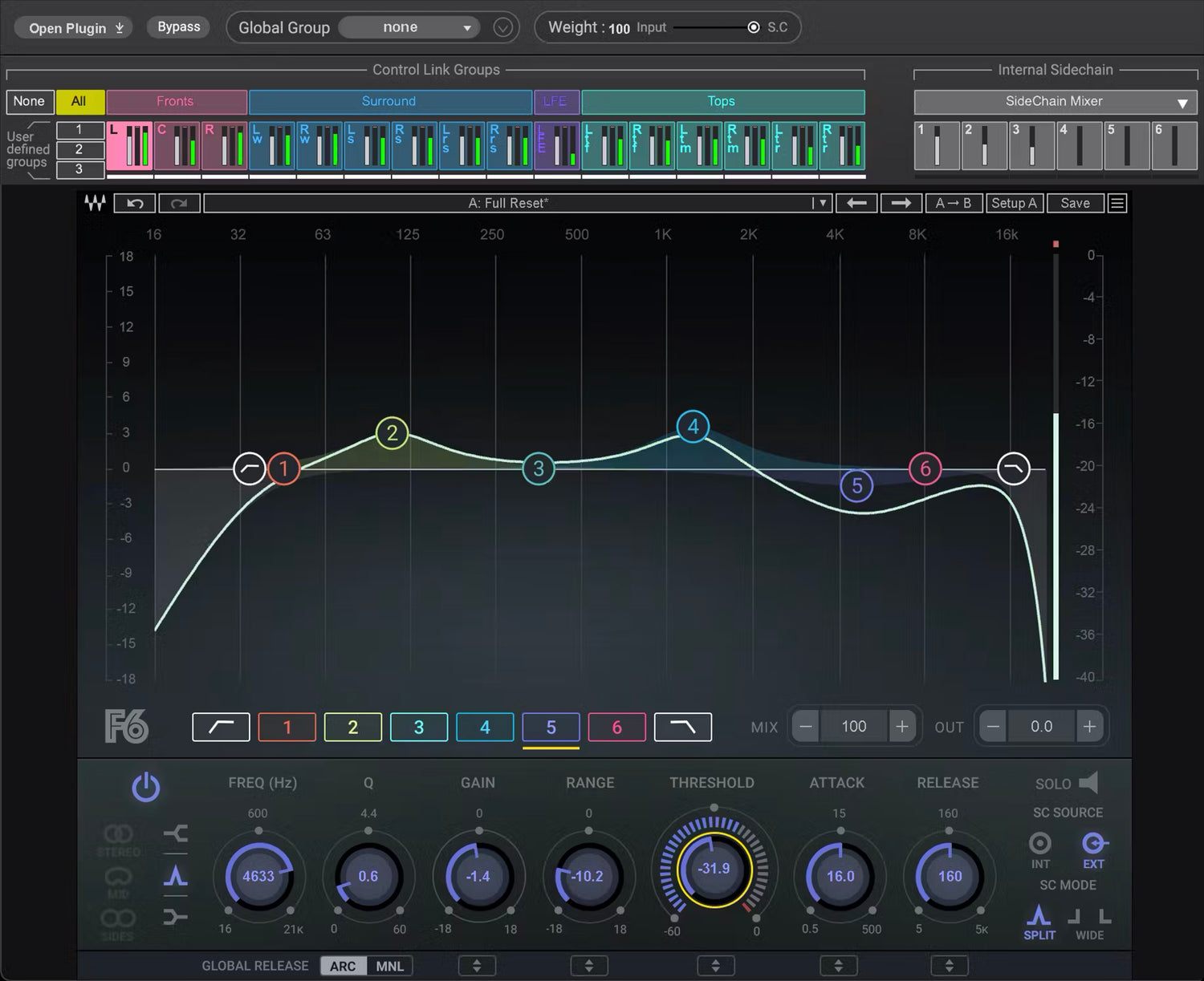 - Comprehensive shared internal sidechain system, for mix-wide dynamics processing