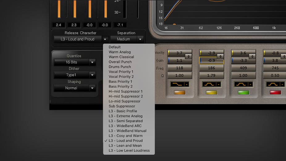 Der er ikke noget som L3-16. Ved at fusionere paragraphic EQ og dynamik kontrol viser de informative skærme 16 virtuelle bånd, med respons repræsenteret af tre diskrete kurver—attenuation, EQ, og priority. Og det hele er under intuitiv kontrol, takket være et velkendt paragraphic EQ kontrol sæt.