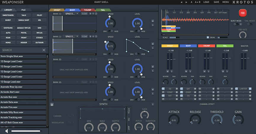 Weaponiser er dit hemmelige lyddesign-våben: en inspirerende lagringsløsning, der giver dig mulighed for at designe, tilpasse og udføre et stort udvalg af lydeffekter i realtid - alt sammen fra én plugin.